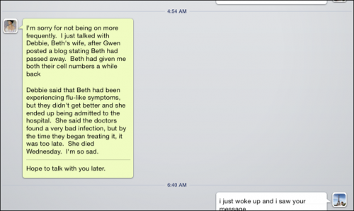 Though I did know Beth that well, I have had a few PMs with him. I am saddened by this news.