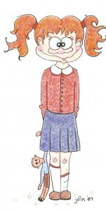 Now as Debra and company prepared to depart ,she might have to spend the very short rest of her life clinging to those memories, and to the special gift Debra had given her on her last birthday. Among Debra’s many talents was artistry, and she’d drawn a portrait of the child within Julie. She was a little princess, but not of the true fairy tale variety. She had red-hair up in bunches, freckles, those killer blue eyes and a wide silly grin. There was no pink pouf princess gown, just a simple red blouse with a peter pan collar and a navy blue, knee length pleated skirt. A pair of skinned knees appeared just below the hem of the skirt, and white knee highs had fallen unevenly, one nearly down to the top of her brown Mary Jane’s. The entire outfit, along with the girl wearing, it looked a bit worse for wear from what must have been a good hard day of play, but the eyes and the smile spoke volumes about the pure joy and contentment in this child’s heart. In Julie’s right hand was her doll Maggie, every bit as worse for wear as the child who loved her, and no doubt like the famous Velveteen rabbit, the doll had been literally loved to life.